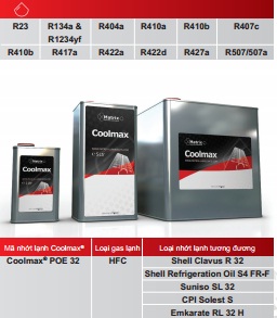 Coolmax® POE làm việc tốt với các hệ thống sử dụng các môi chất lạnh sau: