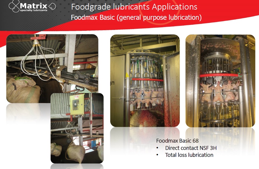 Bôi trơn và bảo dưỡng các hệ thống máy móc trong nhà máy thực phẩm, nhà máy dược phẩm, nhà máy chế biến nông sản.