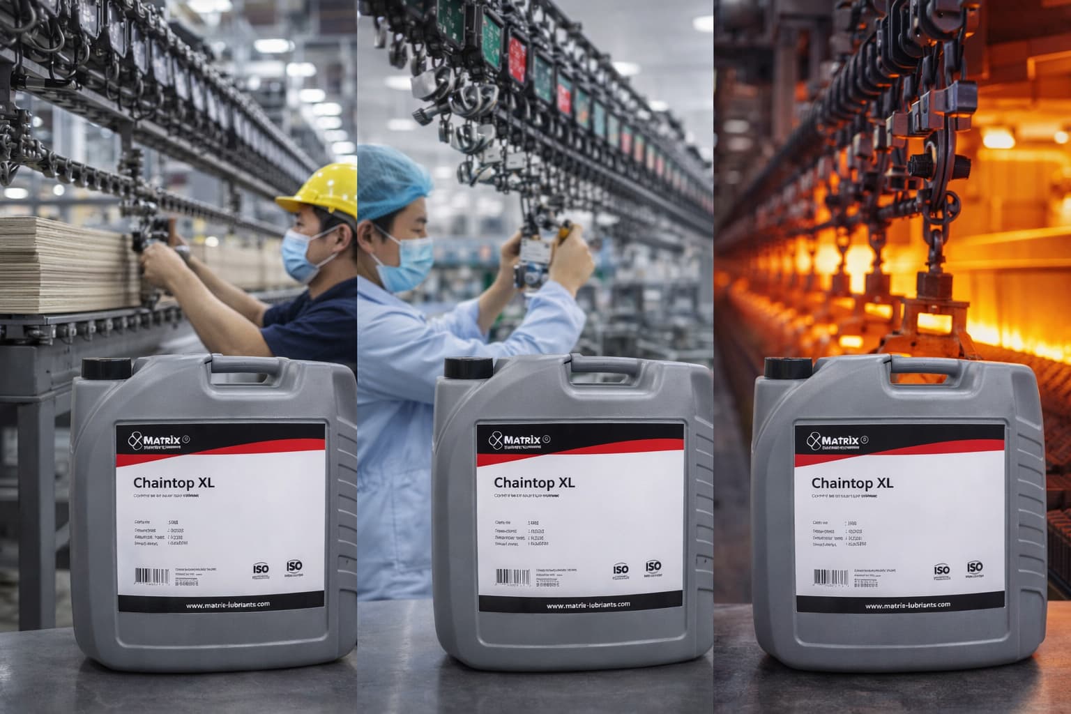 Chaintop XL duy trì màng bôi trơn ổn định trong điều kiện nhiệt độ lên đến 300°C, phù hợp với các hệ thống lò sấy, lò nung, dây chuyền nhiệt.